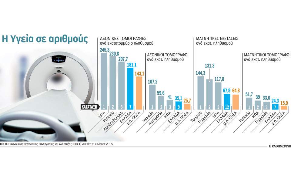 «Ενας ποιοτικός έλεγχος για το ποιες εξετάσεις χρειαζόμαστε, γιατί τις κάνουμε και τι αποτελέσματα έχουμε, θα μπορούσε να βάλει ?φρένο" στον μεγάλο αριθμό αξονικών εξετάσεων που διενεργούνται στην Ελλάδα», σημειώνει ο κ. Κελέκης. Σύμφωνα με τα στοιχεία του ΟΟΣΑ, στην Ελλάδα διενεργούνται 181 αξονικές τομογραφίες ανά 1.000 κατοίκους τον χρόνο, όταν ο μέσος όρος μεταξύ των χωρών του ΟΟΣΑ είναι 143 αξονικές τομογραφίες ανά 1.000 κατοίκους.