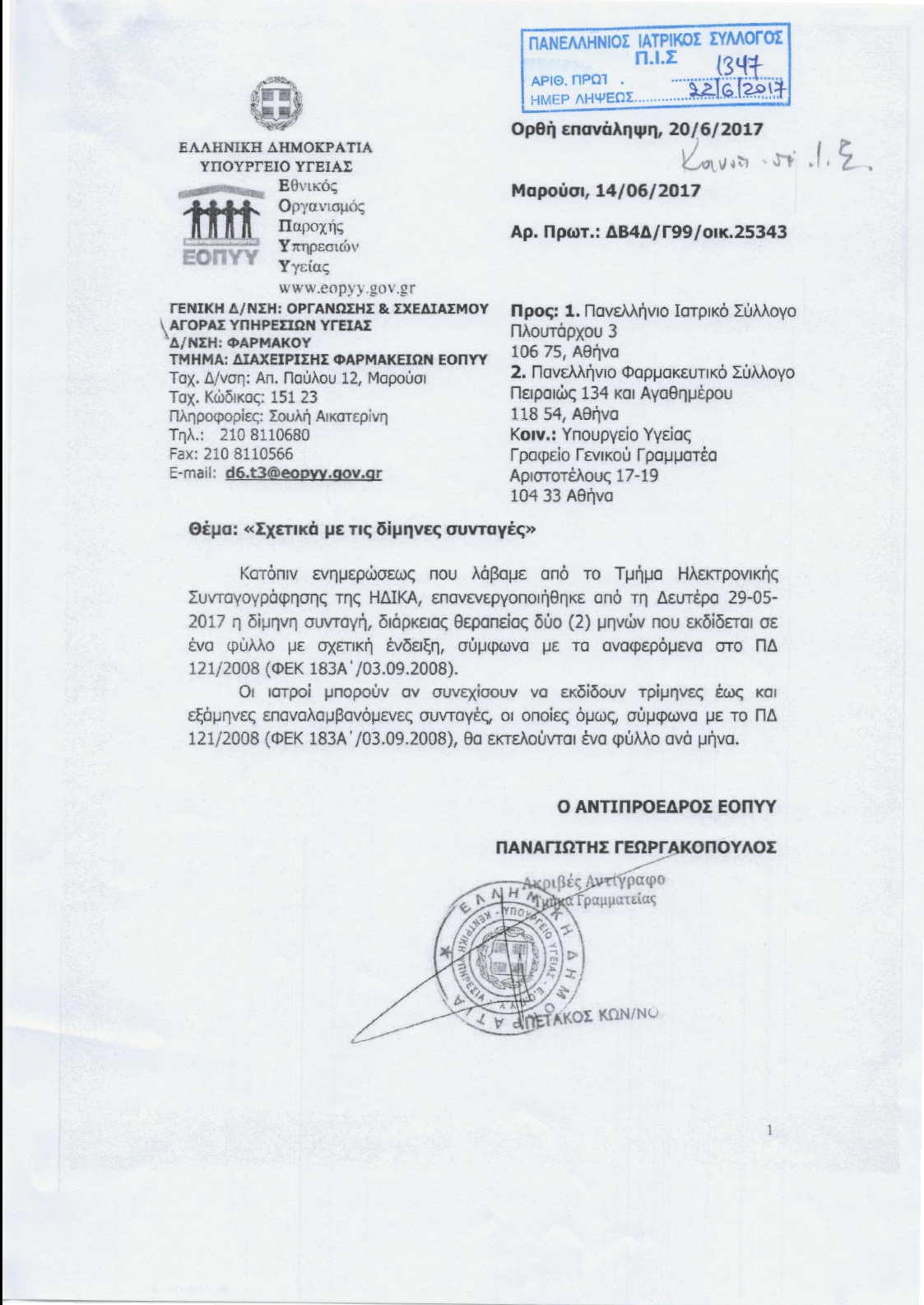 ΕΟΠΥΥ - Σχετικά με δίμηνες συνταγές